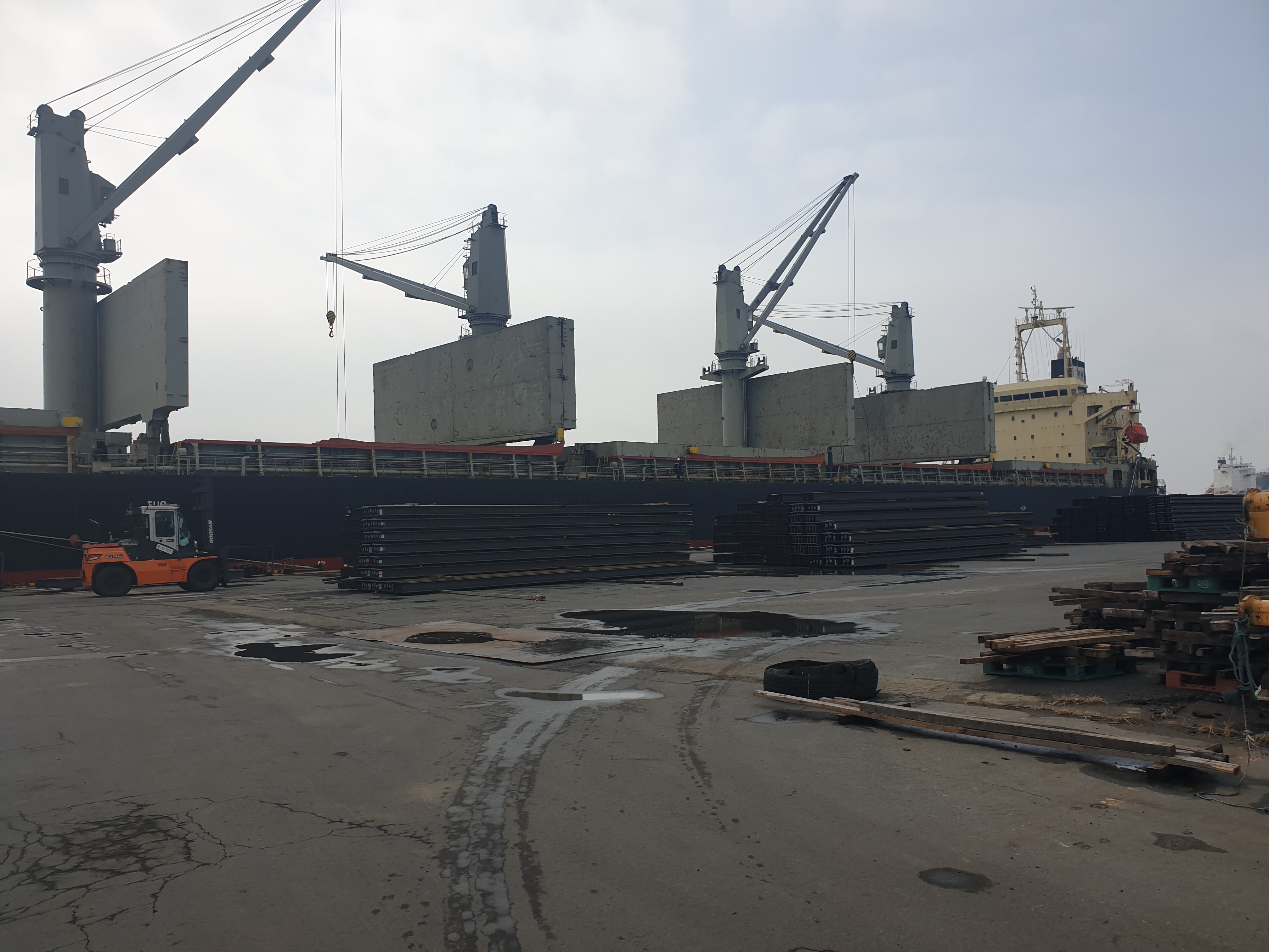 (철근등 중량물 화물을 바닥에 먼저 선적후,
